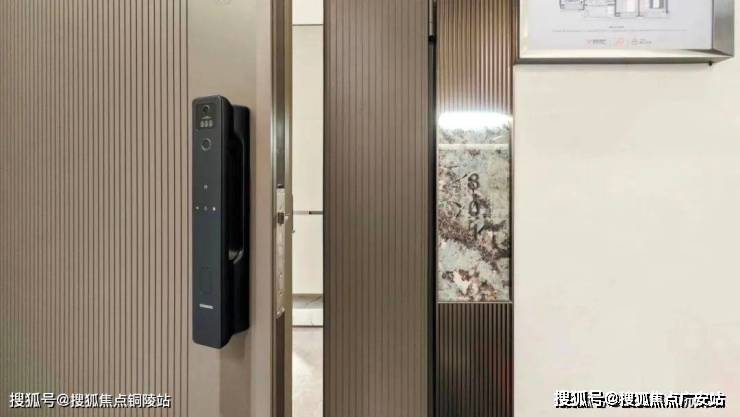 尚未入户,自带猫眼的四合一智能门锁,配合定制的门牌号与logo集合而成的入户门,彰显着主人的品位与尊贵地位。