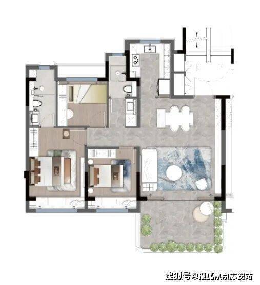 云阙户型建筑面积约120㎡三房两厅两卫超享尺度|约6m横厅布局|酒店级主卧套房|约17㎡露台花园|3+X灵动空间