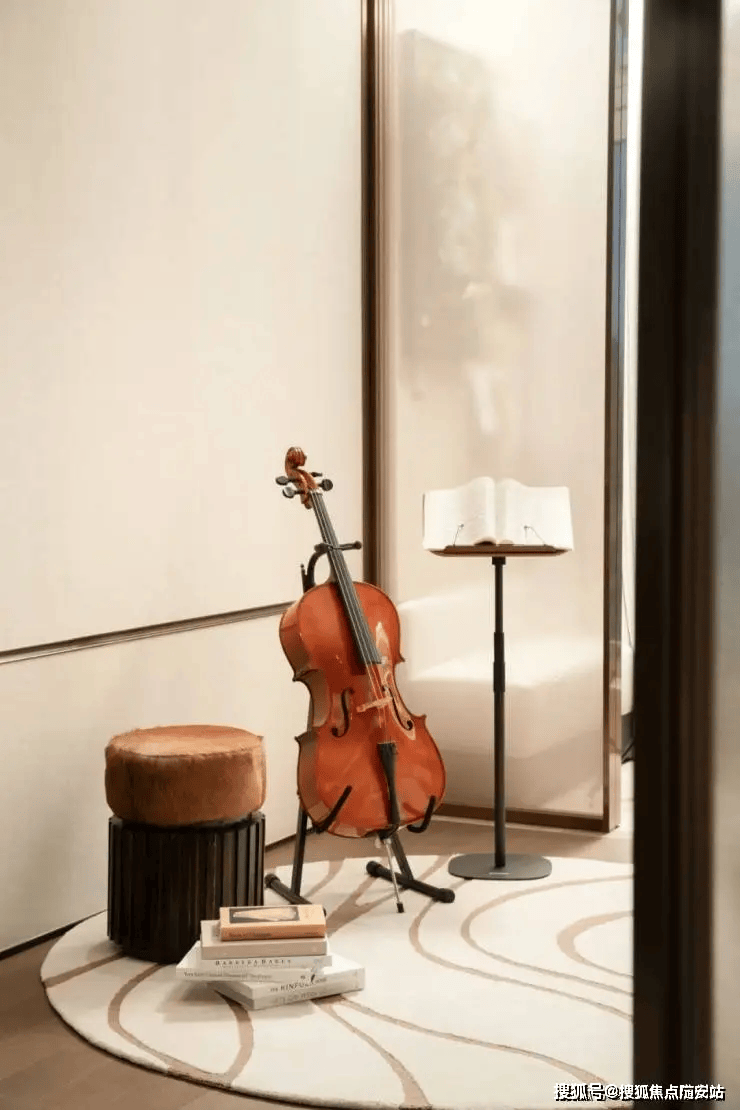 由WSD上海世尊团队执笔,以“摩登东方”设计语言抽象东方写意精神,入户即见约2米宽法式艺术走廊(地面几何拼花石材+白色实木线条),如“小卢浮宫”般安放艺术收藏。转角厅含X空间达约120㎡,可容20人风尚派对,远超南岸480㎡大平层110㎡客厅的常规尺度。