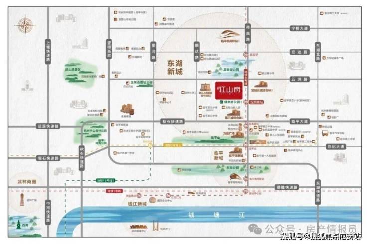 咫尺地铁五洲路站、临平唯一三甲医院、复创云城等综合体、北望龙安湖公园、南临滨水绿地、园区水系串联,