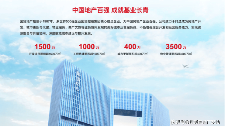 旗下的国贸地产,为国贸股份全资子公司,始创于1987年,连续9年荣获“中国房地产开发企业100强”、连续3年获得“中国房地产开发企业运营效率10强”和“中国房地产开发企业品牌价值华东10强”,拥有“金钥匙”品牌商标。