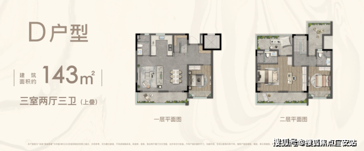 D户型(143平上叠):348-388万 三开间
