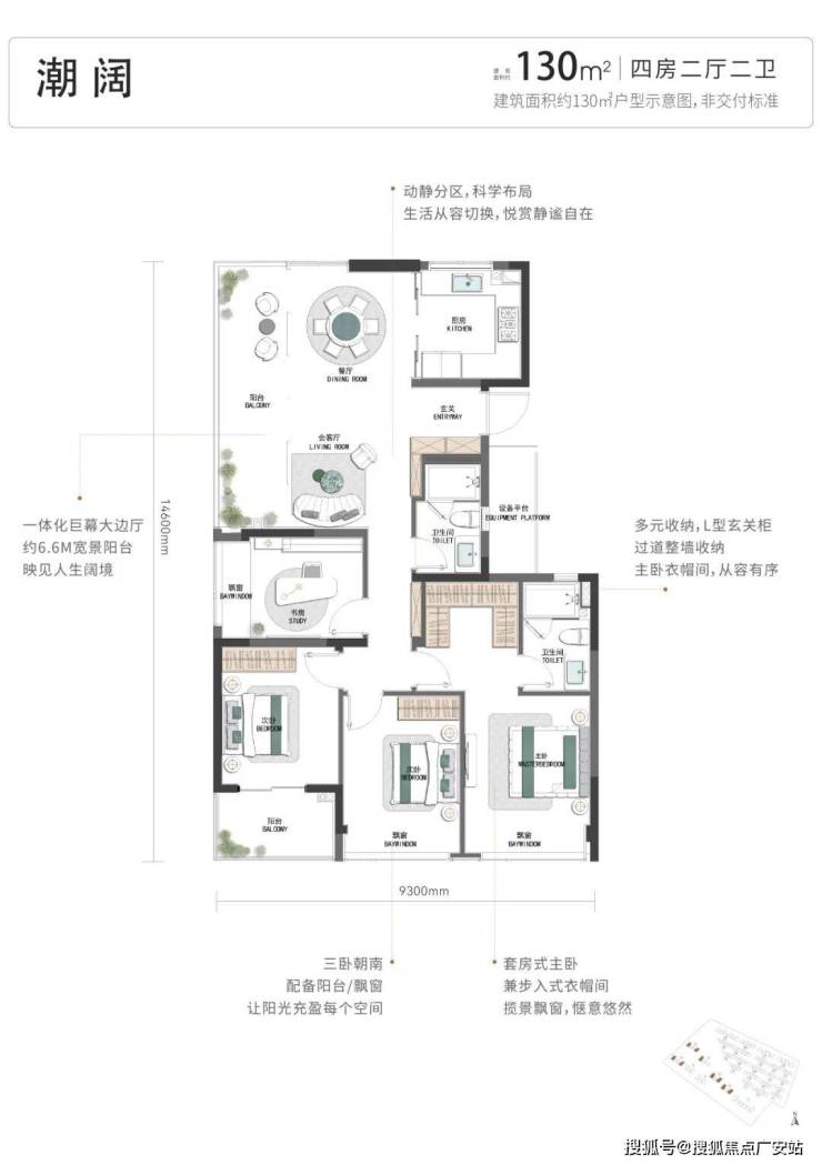 再来看项目的四房户型,有建面约127方、约130方2款。