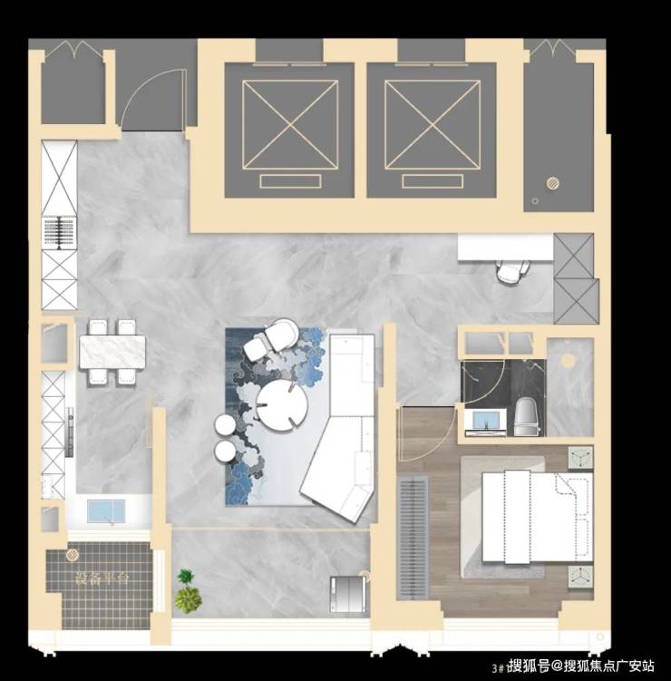 其中2#为超高层,北向可观小区绿化和苏河景观,高区可瞰三件套盛景。