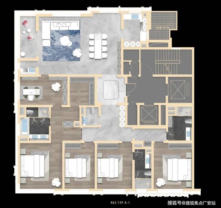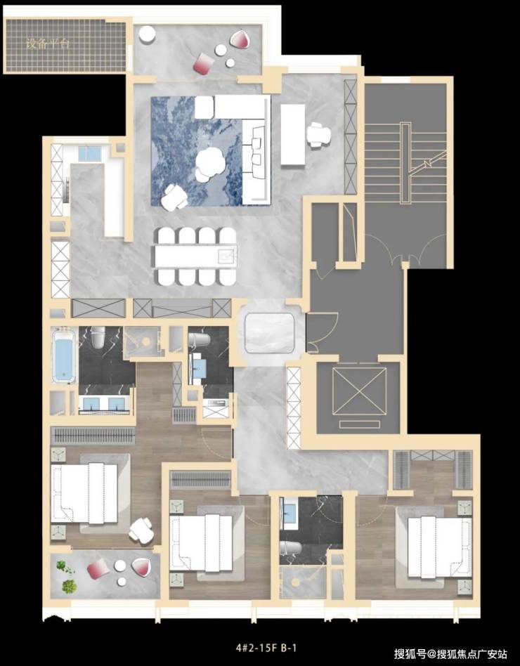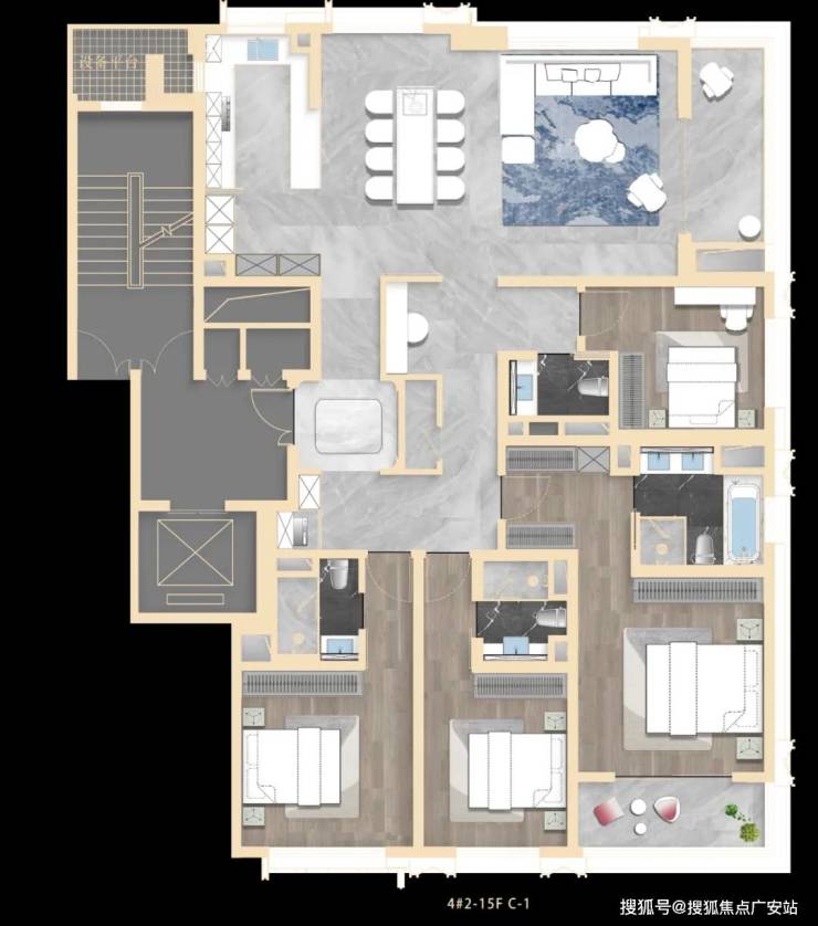 尤其主卧星级套房,配置独立衣帽间、书房,奢华主卫四分离,双台盆+淋浴区+大浴缸+智能马桶,私密性&奢适度无敌;