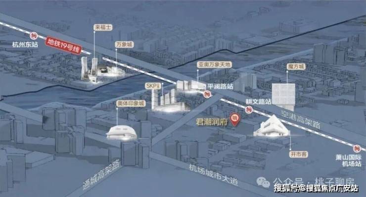 要知道,地铁19号线堪称黄金大动脉!从君潮润府出发,一站瞰亚运,两站汇江河,三站杭州东,四站西湖文化广场,五站钱江路。还有两端的「第三中心」杭州未科&云城、国家级临空经济示范区……
