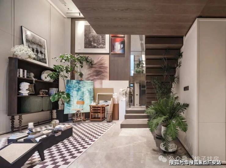 出电梯的第一眼,就是一个多在大平层豪宅里才有的电梯前厅,既保障了归家仪式的私密感,又悄然增加了实际可支配面积,诸如收纳、养花甚至晾晒等,就不得不给个赞了。