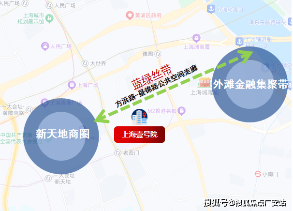 黄浦还提出了“蓝绿丝带”规划设计概念,通过重塑由方浜路和昼锦路组成的公共空间,打通新天地、豫园、外滩三大传统商圈,打造最特色多元的街区,联系上海的过去、现在和未来。