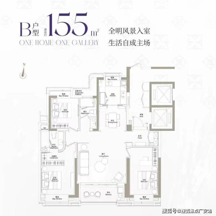 近全飘窗设计,扩展了生活的尺度感;主卧豪华套房设计,兼顾私密性与居住舒适度!