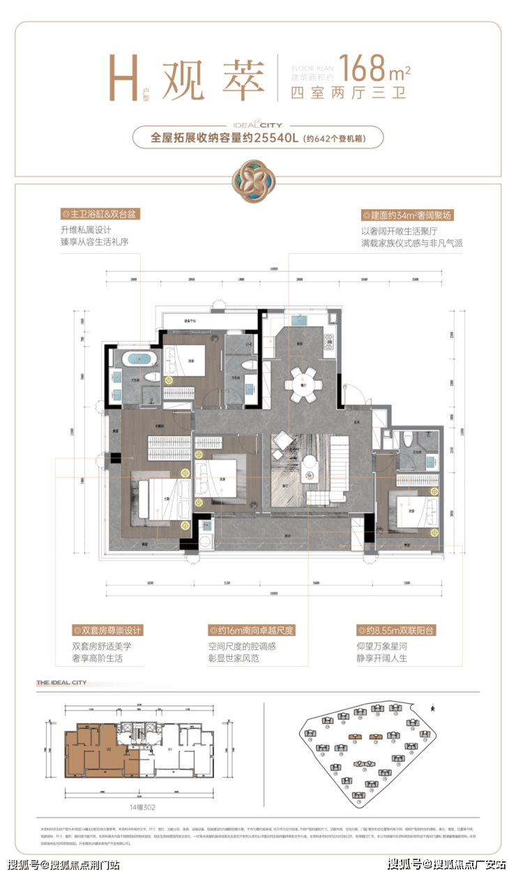 好比这个爆款四房户型,用约168方面积,过出约200方的奢华感。