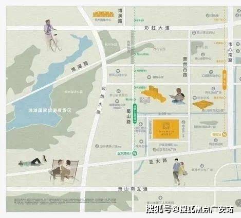 7大城市公园环绕,其中构建“五馆合一”的萧山城市文化公园约2公里,附近还有湘湖风景区。