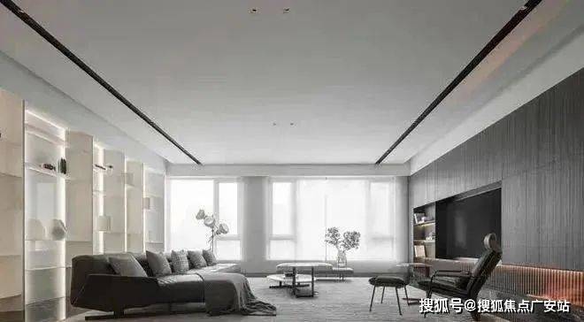 客厅的设计独具匠心,采用了无主灯设计,巧妙地梳理了空间的层次感。灰色的布艺沙发与整体空间风格相得益彰,舒适而优雅。沙发背后的整面收纳墙不仅凸显出极高的生活品味,还为空间增添了实用性。落地窗确保了充足的光源,让整个客厅充满了明亮与温暖的气息。