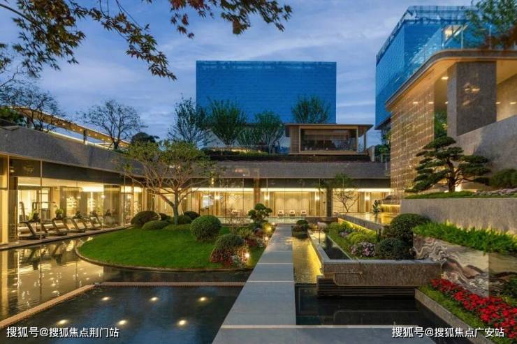 从白玉水晶会客厅的超高玻璃看出去,可见庭院的“每一米”都被不同的景色铺满,镜面般的水系、圆润可爱的灌木丛、昂扬向上的花木以及形似瀑布的金属珠帘等共同组成了灵动的立体图景,宛如置身新加坡parkroyal公园的皇家酒店。