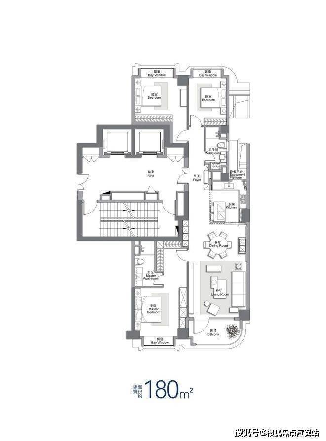 建筑面积约180㎡3房(户型过程稿,以实际交付为准):