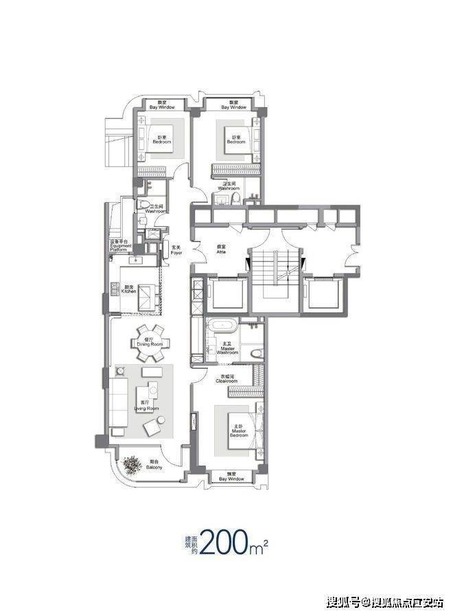 建筑面积约200㎡户型(户型过程稿,以实际交付为准):