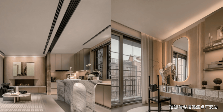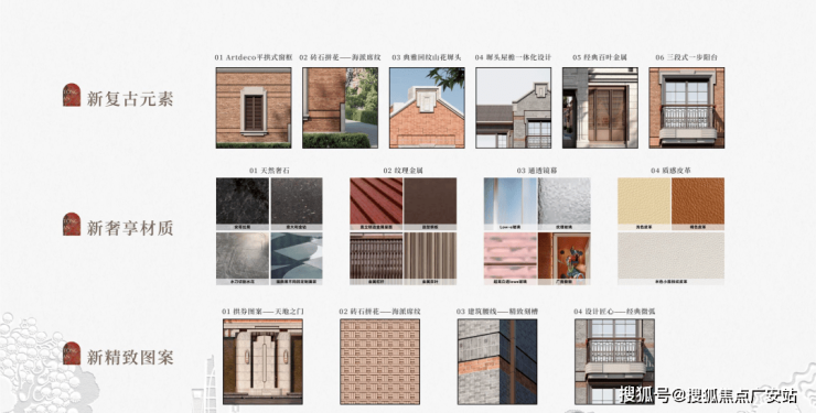 深入看细节,你会发现项目高颜值的6大新复古元素。包括Artdeco复古式窗套、现代石材抹角、典雅山花样式、墀头屋檐一体化设计、经典仿木百叶、石库门专属地砖符号等,用先锋表达回应在地文化。