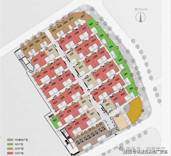 产品面积:联排-185/235/305平叠加-185平