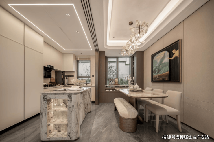 海上·清和玺定制贵雅精装风格,满足用户居家的多重体验。以艺术质感重构想象,奢石/奢板/奢皮/奢布等四奢材质共构视觉盛宴,全维满足高净值客群对品质的极致追求;选用品牌家装,德系等多个品牌定制厨卫,整体不仅保持了空间的艺术感,更提高了空间的实用性,让艺术与功能在此达成完美平衡。
