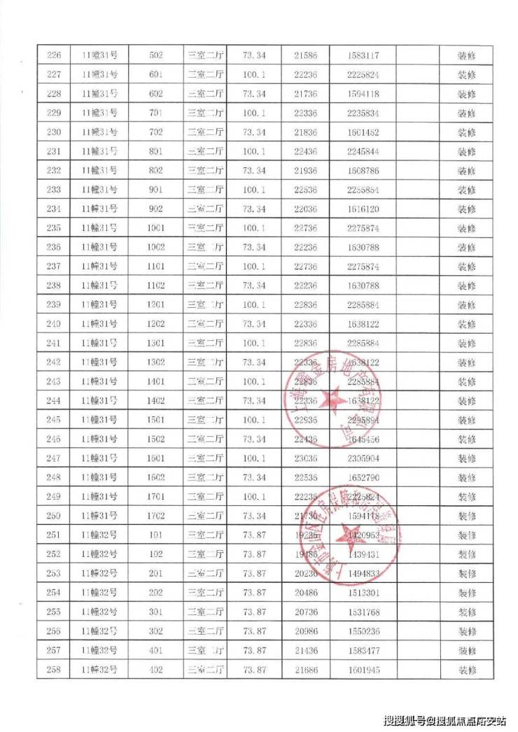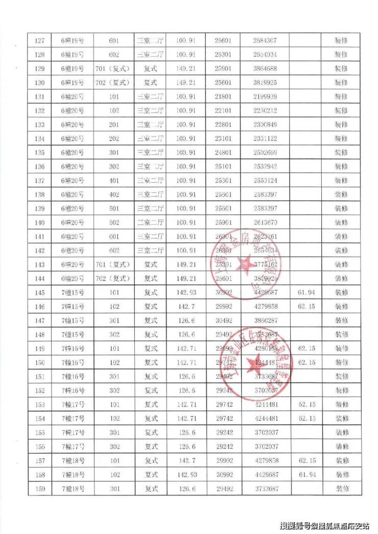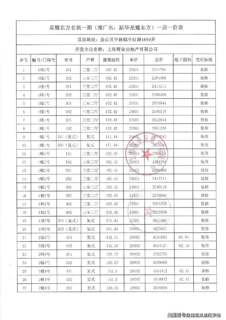 项目一房一价表