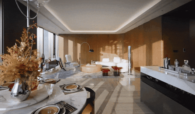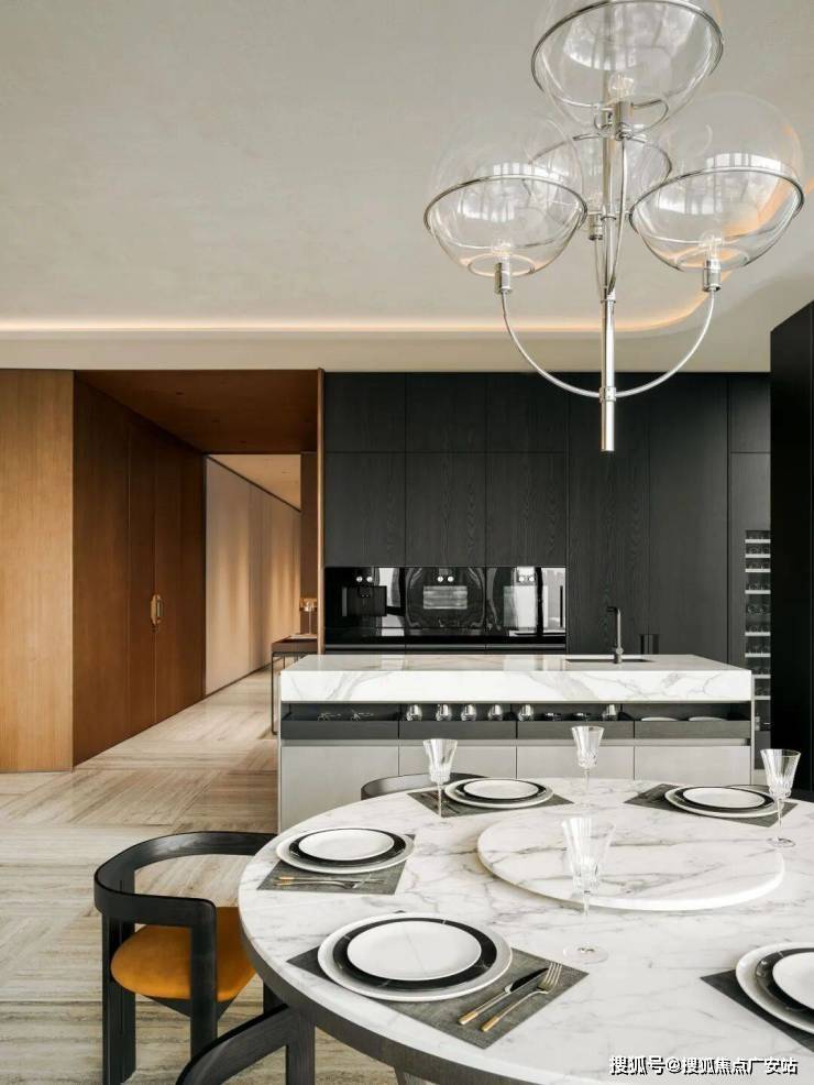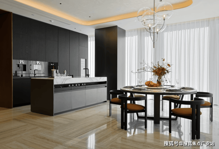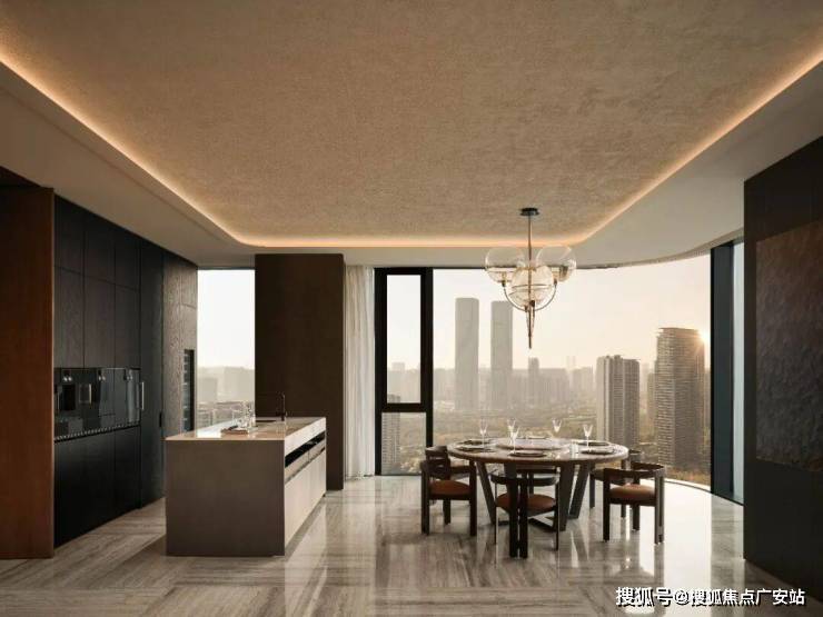 很多时候,设计不是为了创造时尚,而是在创造一种背景,让生活自然地展开。就像安于客厅一侧的餐厅,通透转角中拥揽城市地标的尊崇,一圆一弧间,是家的融合满足。
