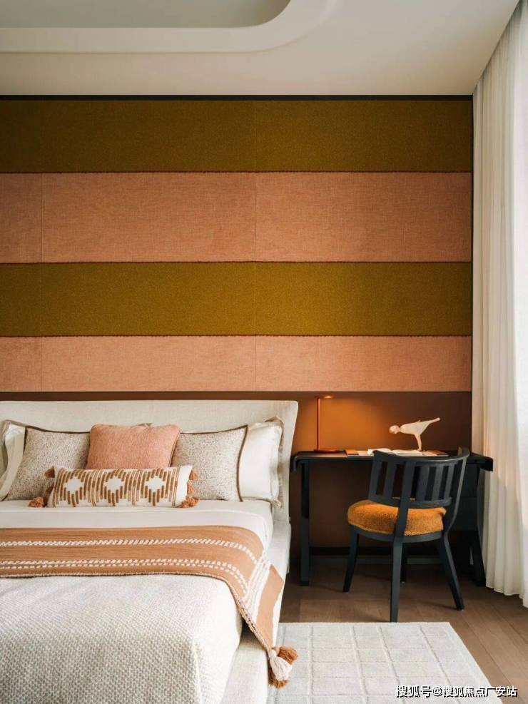 次卧则采用法国Elitis和西班牙Naturtex的面料装点背景墙,无论是焦糖暖调碰撞浅粉,还是仿亚麻肌理搭配浅暖棕,都自带个性主张。同时自带精巧阳台,推窗即可享受阳光景观,灵活适配不同居住需求。