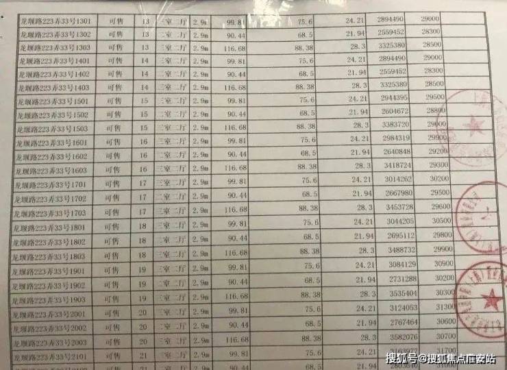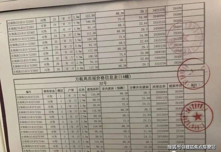 项目一房一价表