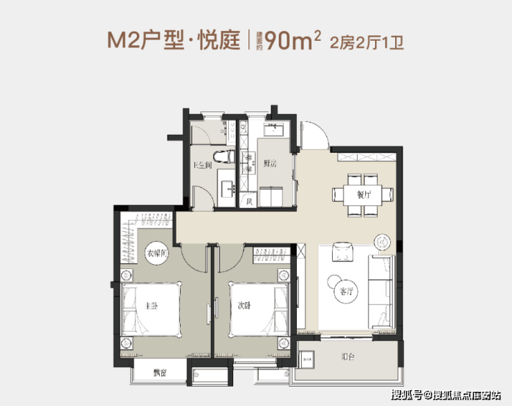 2房2厅1卫90㎡户型图