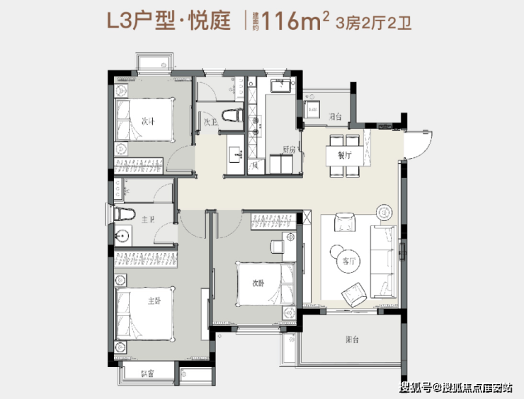 3房2厅2卫116㎡户型图