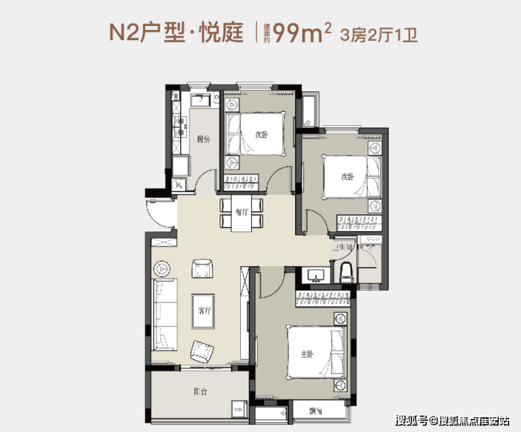 3房2厅1卫99㎡户型图