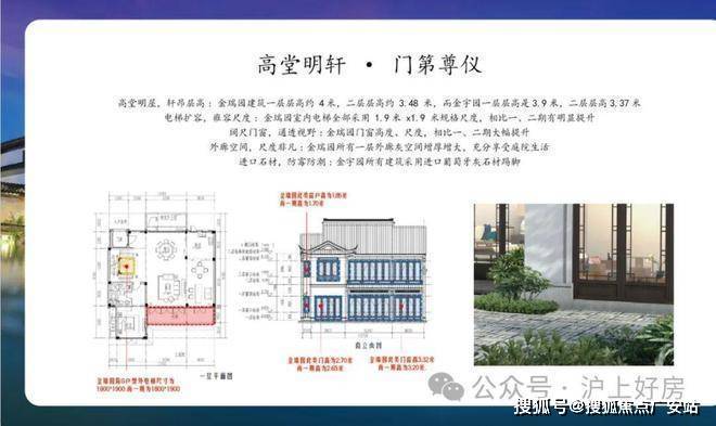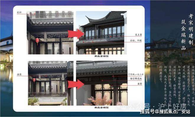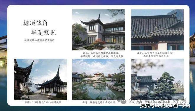 同时,建筑采用宋代宫殿, 建筑出檐宽广,檐下增加斗拱、镂空雕花、甘蔗脊、阑额等元素,约2/3宅园设置入户连廊,为全国之最,雅贵造极。