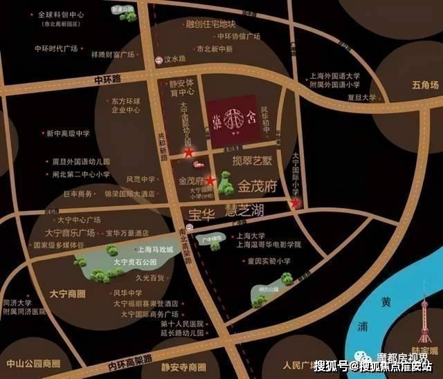 内中环静安区大宁国际社区核心北邻中环线,西邻南北高架1号线汶水路地铁站900米大宁揽翠艺墅仅0.6低密墅区