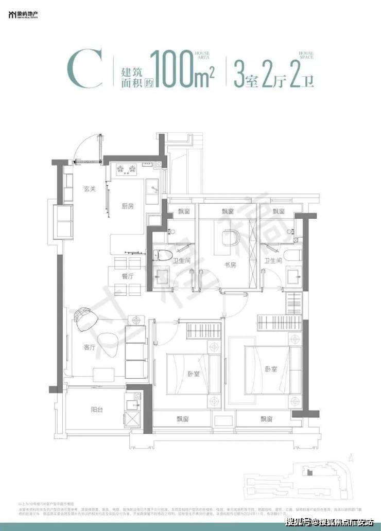项目由高层和风貌别墅组成,高层产品建面约100㎡,风貌别墅约190-220㎡。