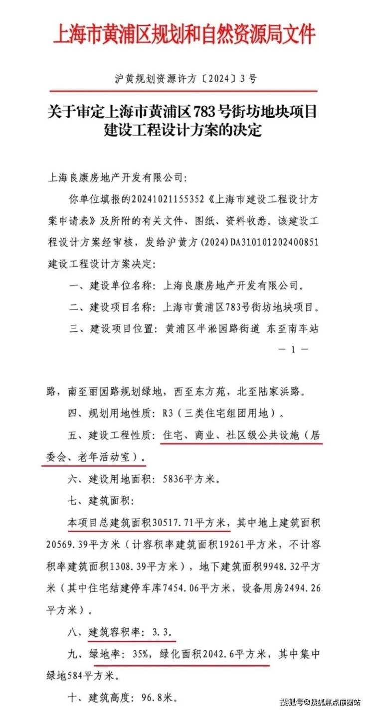 根据规划显示,783号街坊地块项目,总建筑面积30517.71㎡,容积率为3.3,绿化率为35%,绿化面积2042.6㎡。