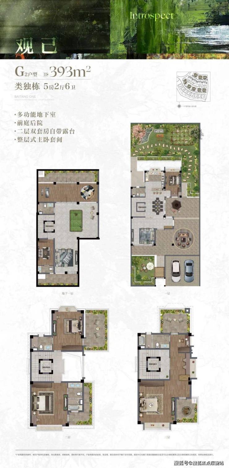 独栋、类独栋的终极形态,户户大尺度约400-600㎡的围合式私属院落,是家庭生活的情感容器,更是精神休憩的私有领地。