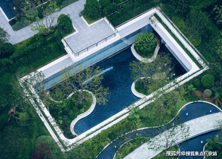 “一帘水幕连天地,半园自然半园家”。下沉庭院的水境森林以无界水池环绕,立体水幕将公园与会所、下沉庭院串联,水声隔绝了外界喧嚣。你在这里散步、静坐、会友,不会有外人打扰。