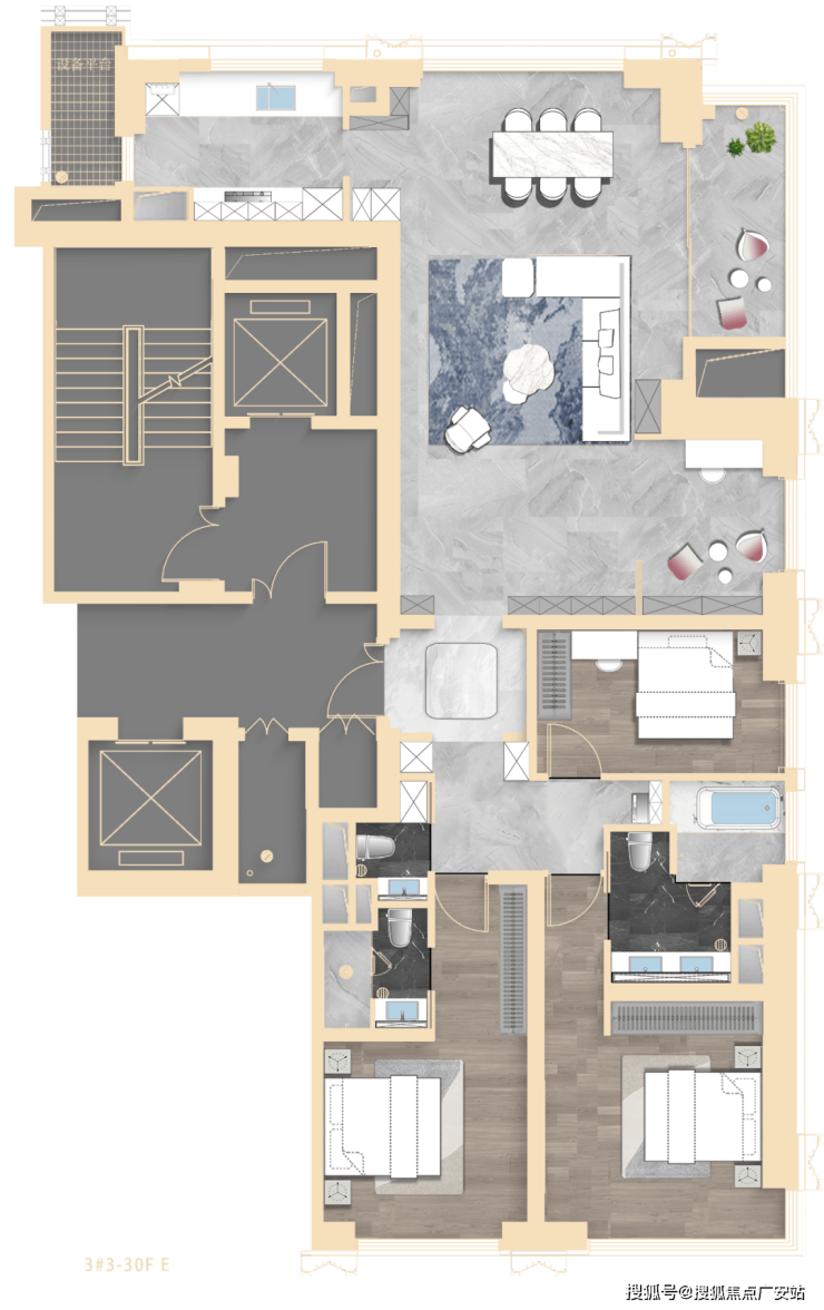 建面约217㎡三房三卫3000万+