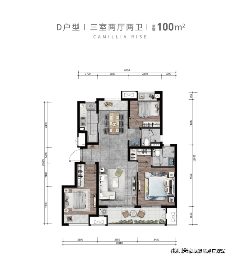 100㎡ 三室两厅两卫(约160万起)