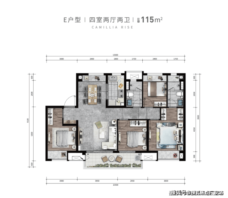 125㎡ 四室两厅两卫(约200万起)