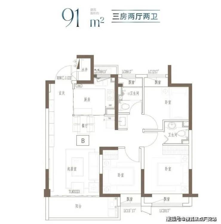 建面约91㎡ 3房2厅2卫▼