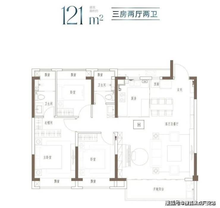 建面约121㎡3房2厅2卫▼