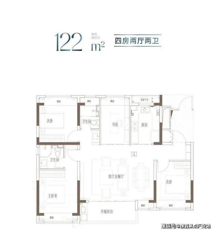 户型特点:宽境4房,拓宽空间尺度;大开间、进深短,通透采光;主卧独立卫浴,优雅随心的寝居感受。