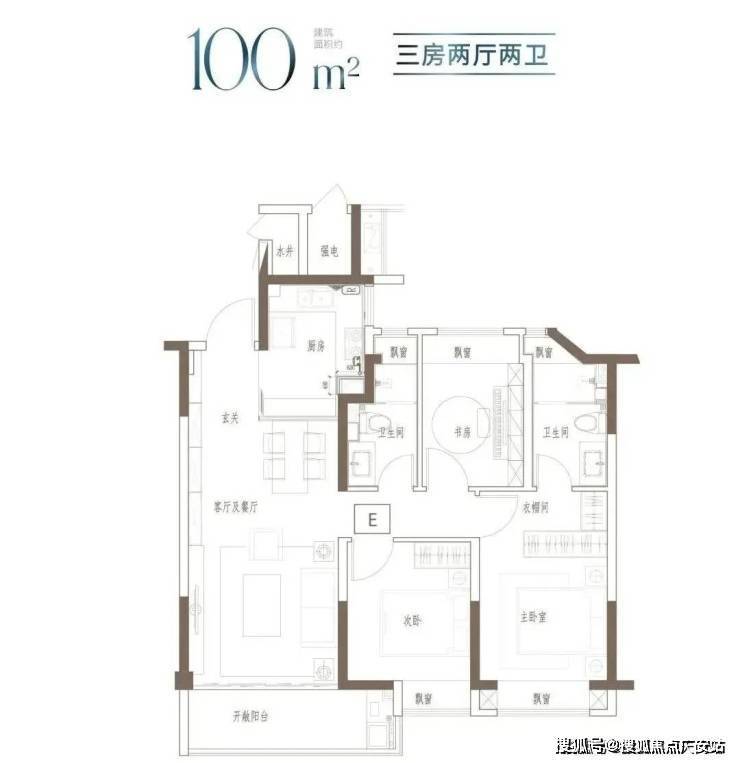 户型特点:3开间朝南,全屋阳光充足;L型厨房转角移门设计,最大化空间视野;四飘窗设计,通透空间享受;动静分区,亲密有度;套房式主卧,容纳私谧生活点滴;
