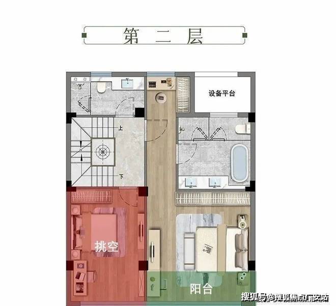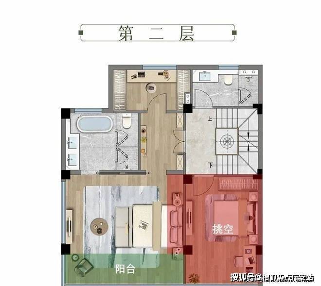 二层,可实现多样化布局。可改约6.4米挑高+南向阳台,根据家庭需要自由定制,可以是2房布局,也可以是家庭第二客厅,工作室、收藏间,灵活性较强。