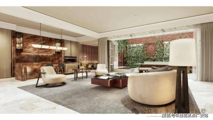 公区设计,巧妙融入百乐门印象、沪西电影院等文化元素,将过去记忆植入场景。嘉佩乐酒店式门庭、琉璃光廊式车库、海派人文哲思花园,以“深度酒店化”营造归家艺术之旅。
