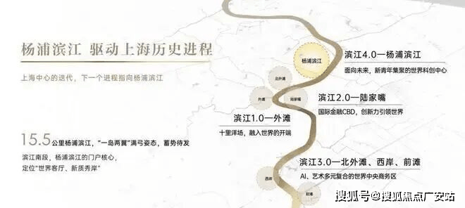 白玉兰广场、世界会客厅、百联滨江中心、美团上海科技中心、抖音上海滨江中心、LCM置汇旭辉广场、上海国际时尚中心、东方渔人码头、杨浦滨江景观带、丹东路渡口。