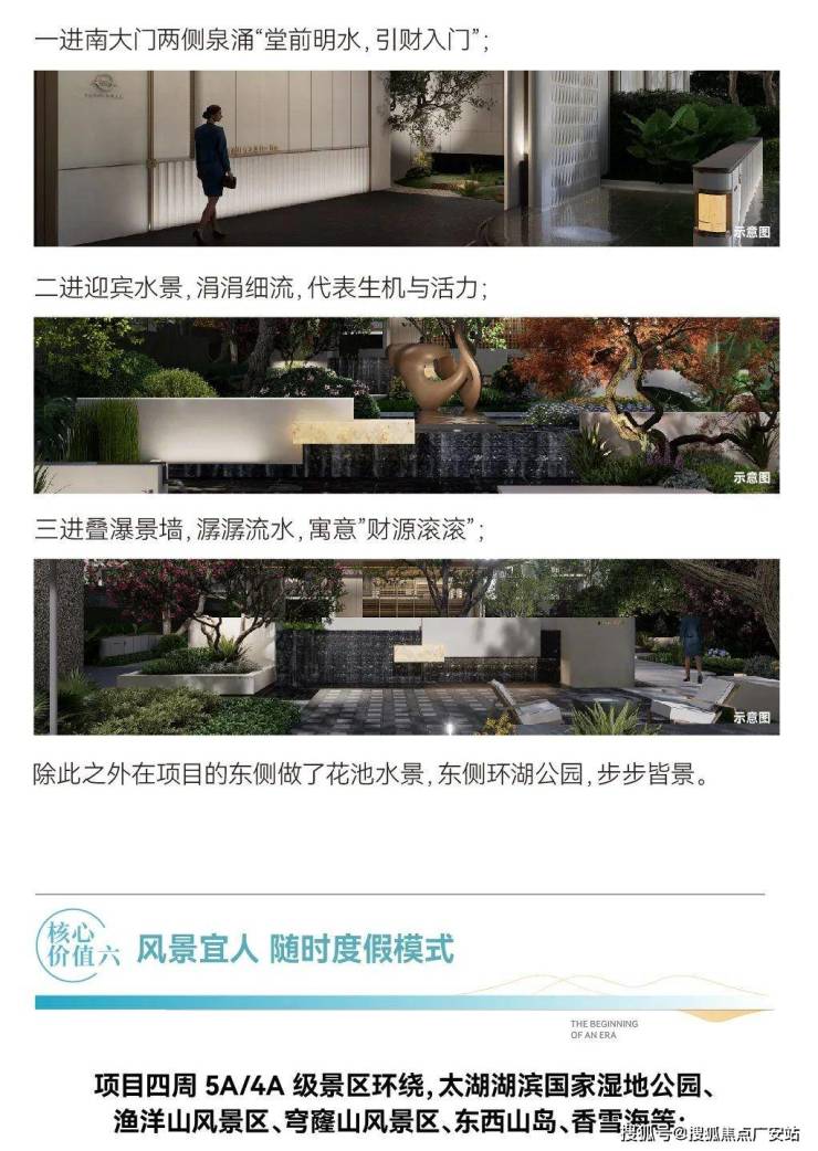 太湖朗墅以“一心·二轴·八巷”为基础,精筑五大未来生活美学体验空间。同时于社区打造约52米、62米超级双门庭界面,以显赫门庭尺度,营造酒店式归家体验。