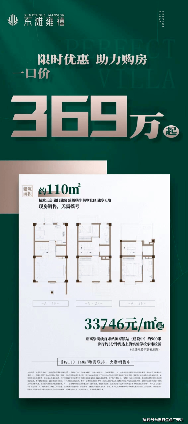 「东滩雍禧」位于崇明岛陈家镇东滩板块,项目由禹洲集团开发打造;项目北临北陈公路、南临银欧路、西临银欧西路、东临陈东路;项目占地面积约5.4万㎡、建筑面积约5.3万㎡、容积率1.0、绿化率38%,由59栋联排和叠加别墅组成,共规划约448户。