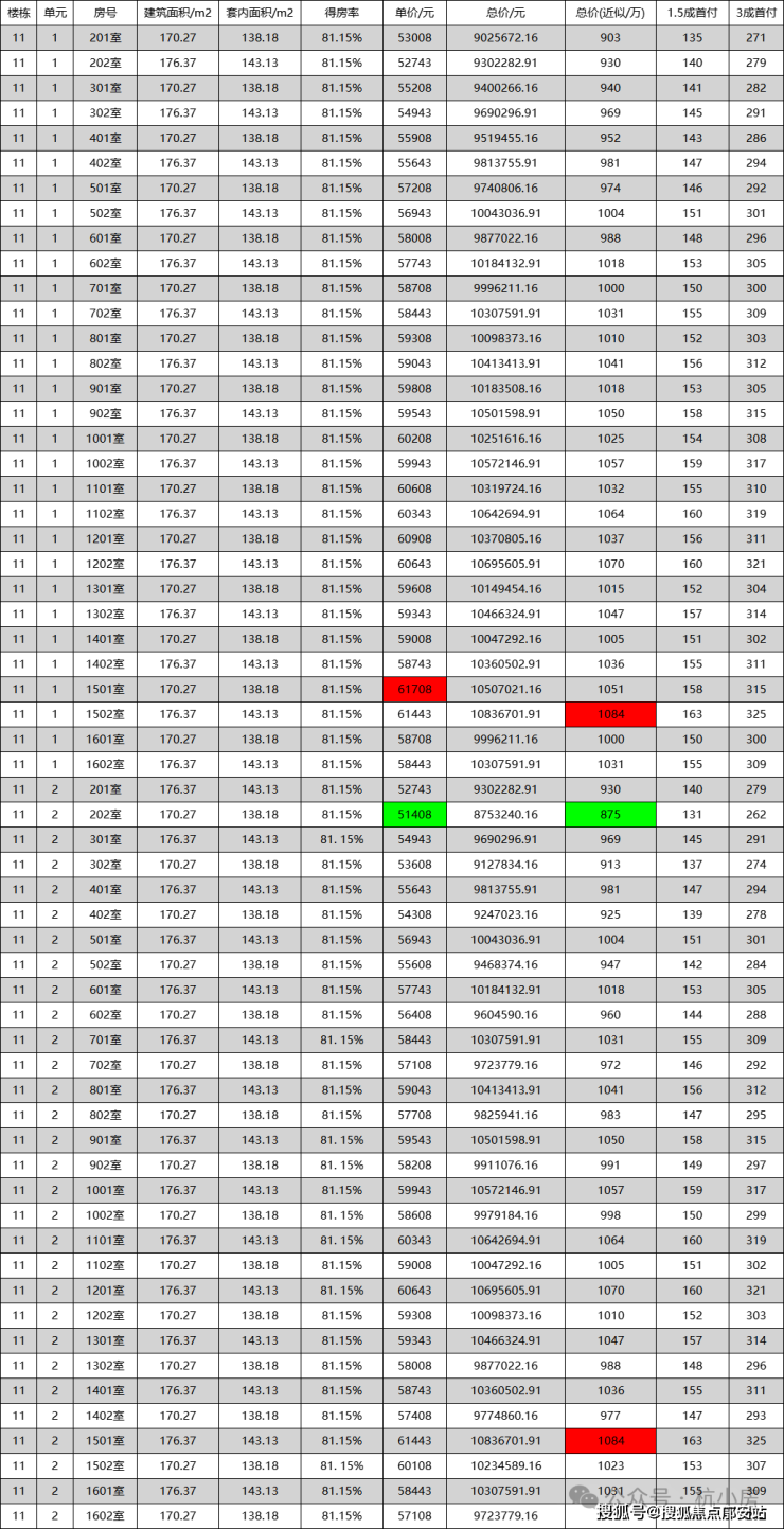 一房一价表
