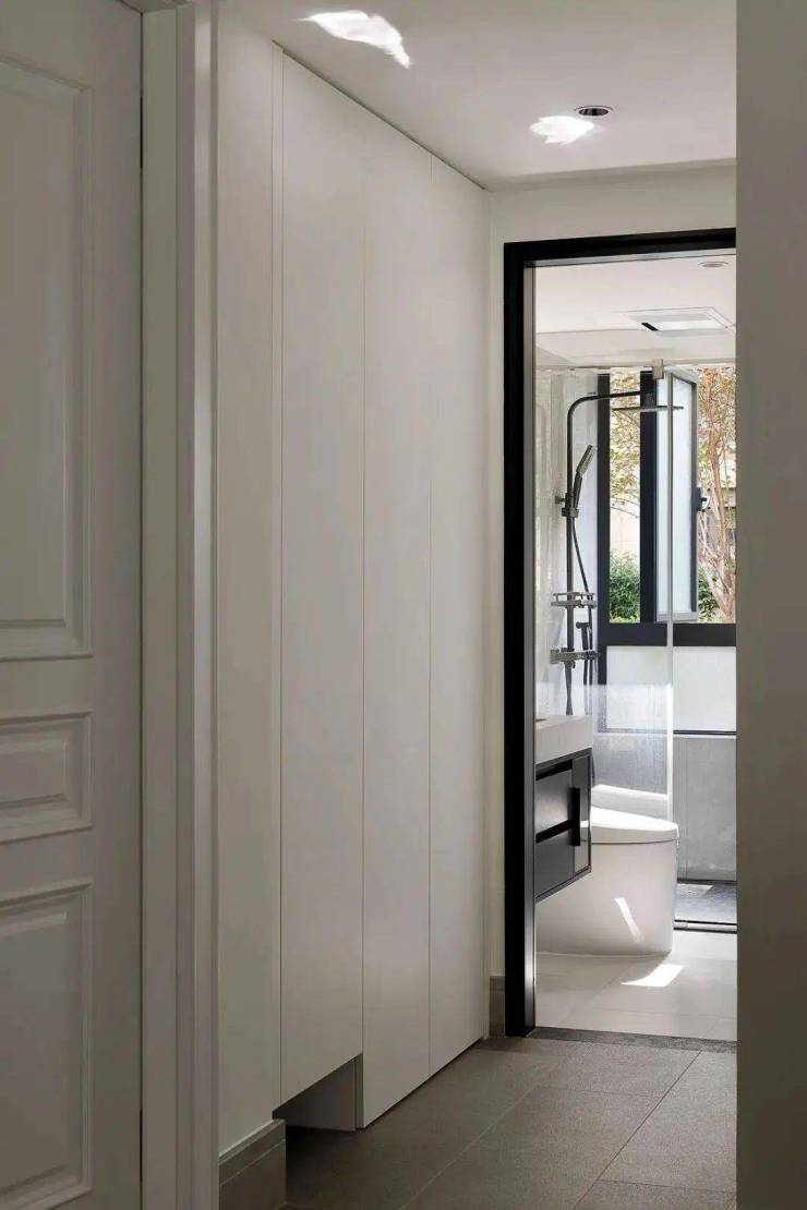 卫生间外嵌入式储物柜,收纳日常杂物。大理石的台面更显空间层次感与质感,干湿分离的布局恰到好处,美观性与实用性兼具。
