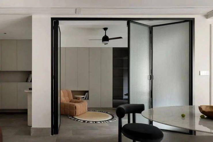 餐厅与多功能房之间采用长虹折叠玻璃门隔断,在艺术与生活之间找到了完美的平衡点。